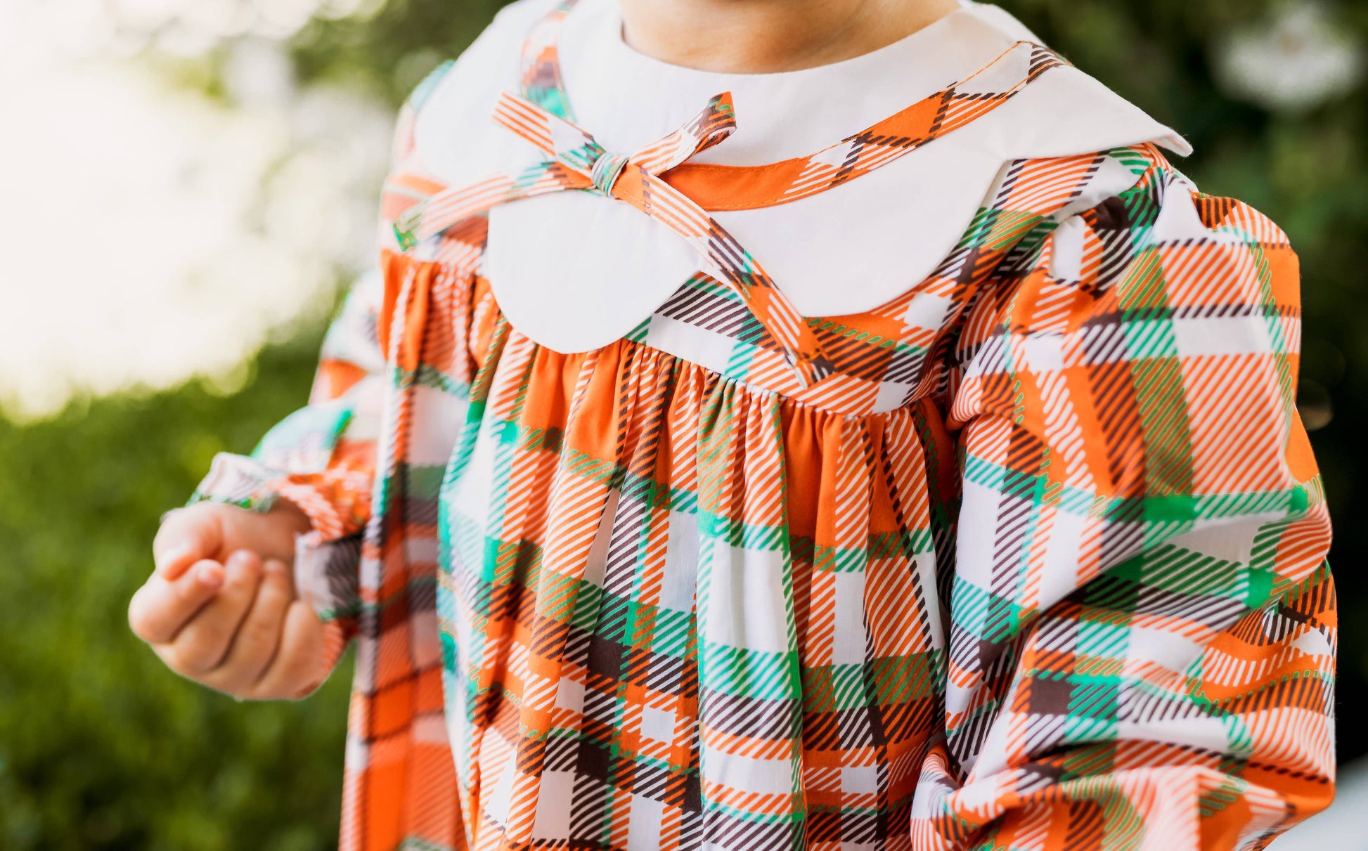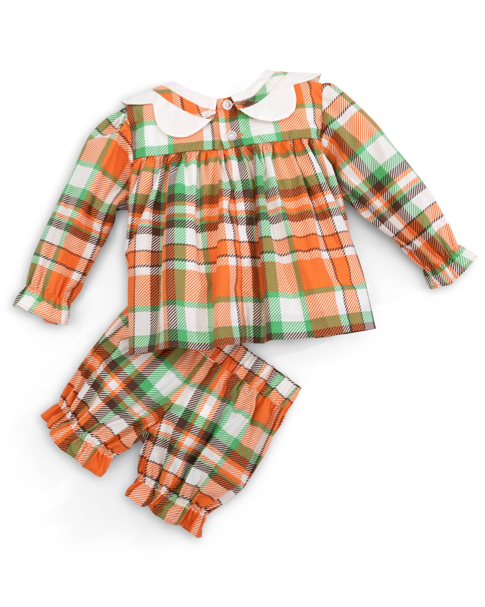 Autumn Plaid Scalloped Bishop Collar Dress & Bloomer Set: