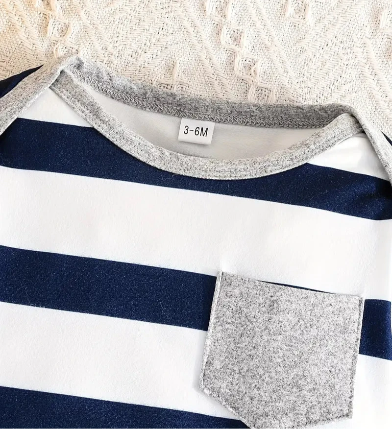Baby Boy's Casual & Comfy Romper - Striped Pattern, Long Sleeve Onesies for Spring/Fall, Perfect for Outdoor