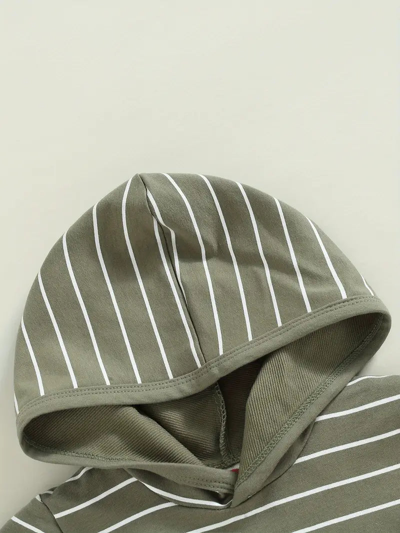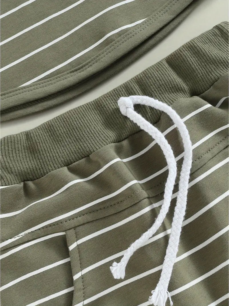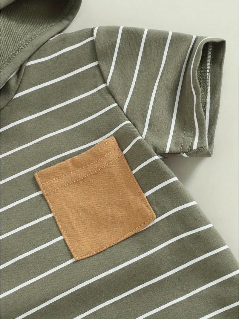 Baby Boys Striped Hooded Sweatshirt and Casual Drawstring Shorts Set, Short Sleeve, Polyester, Spring, Summer or Fall Outfit, Elastic, Perfect for Outdoor.