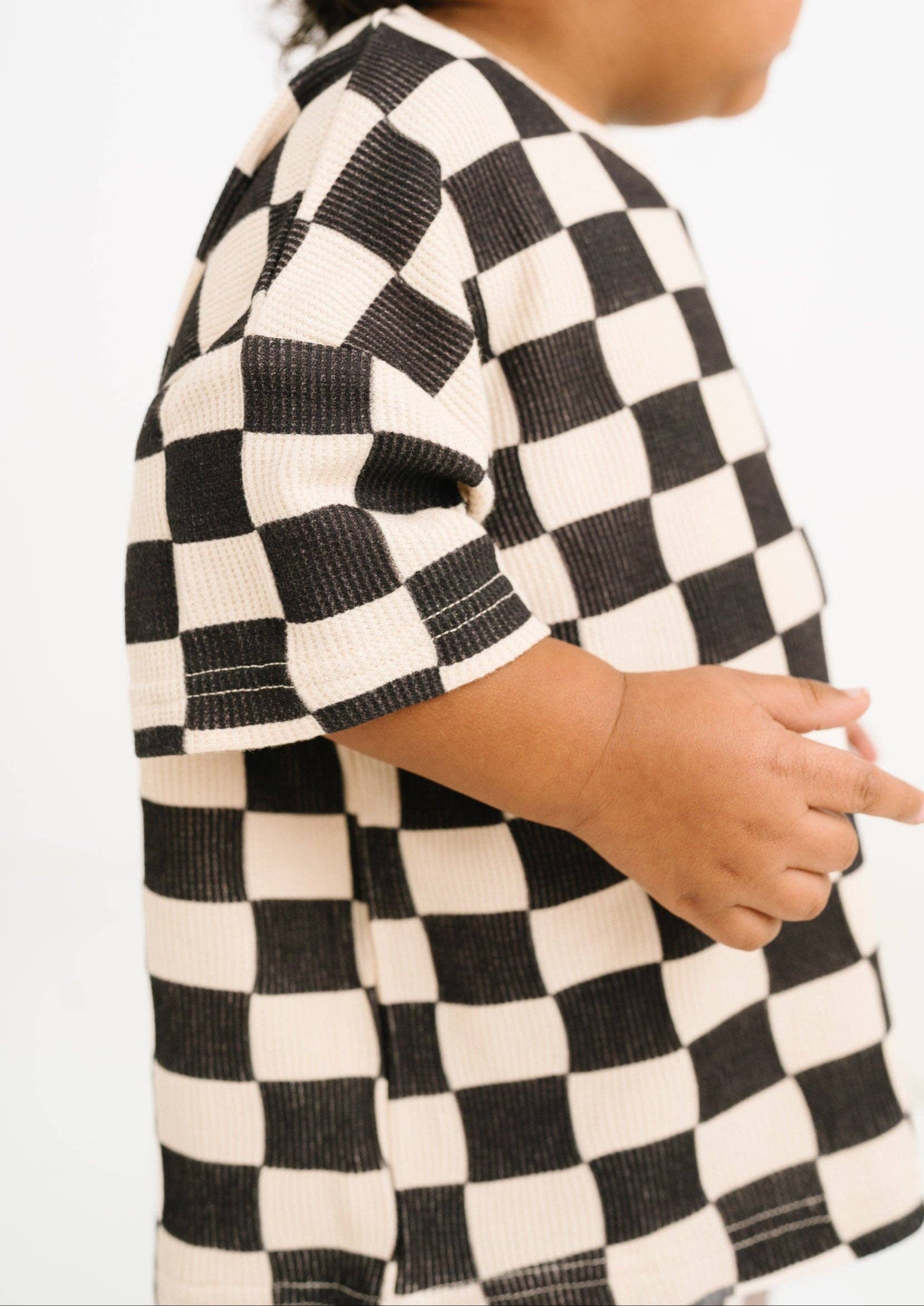 Black Checkered Waffle Bamboo Sleepwear Lounge and shorts set: