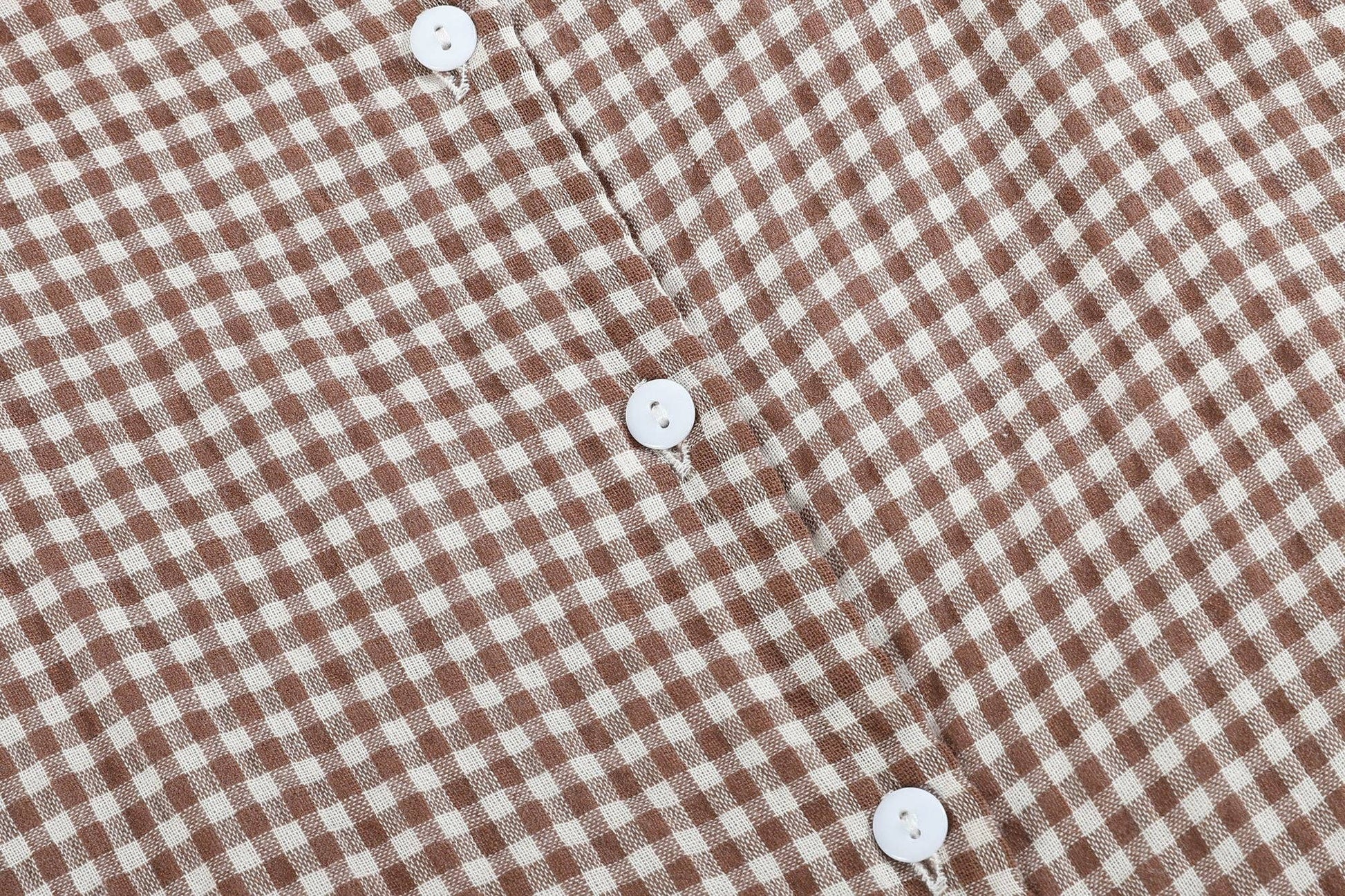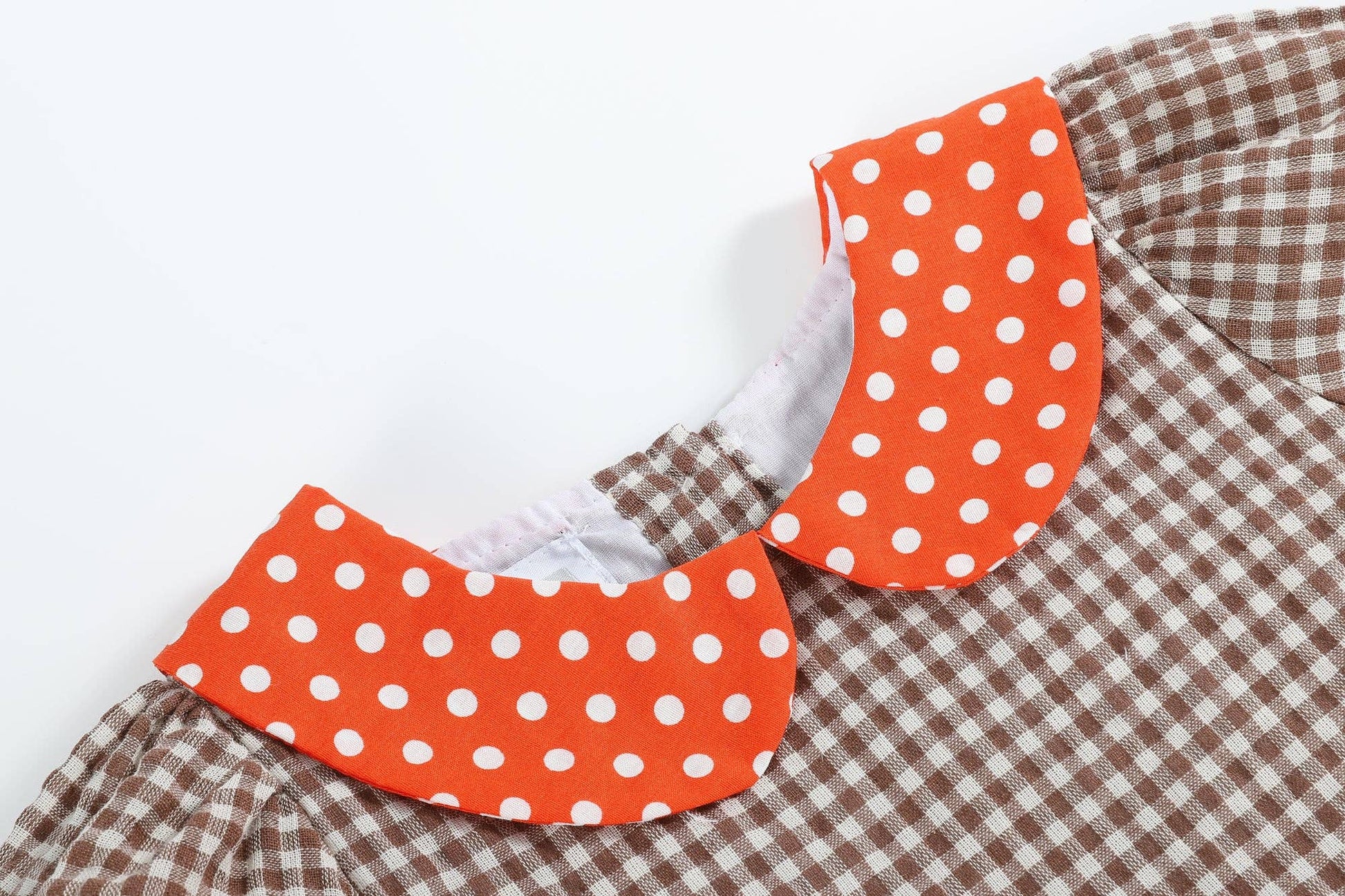 Brown Gingham and Orange Pumpkin A-Line Dress