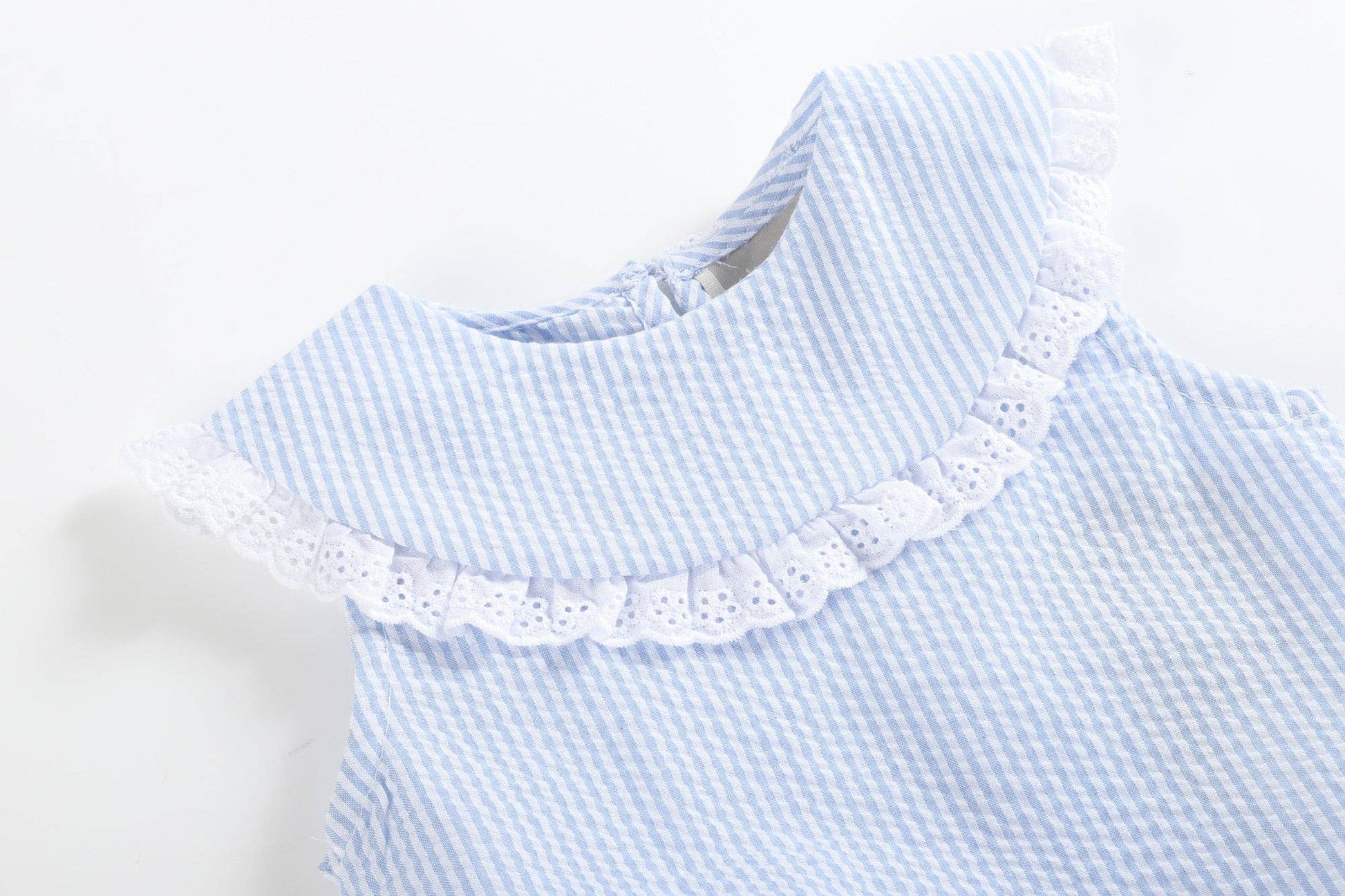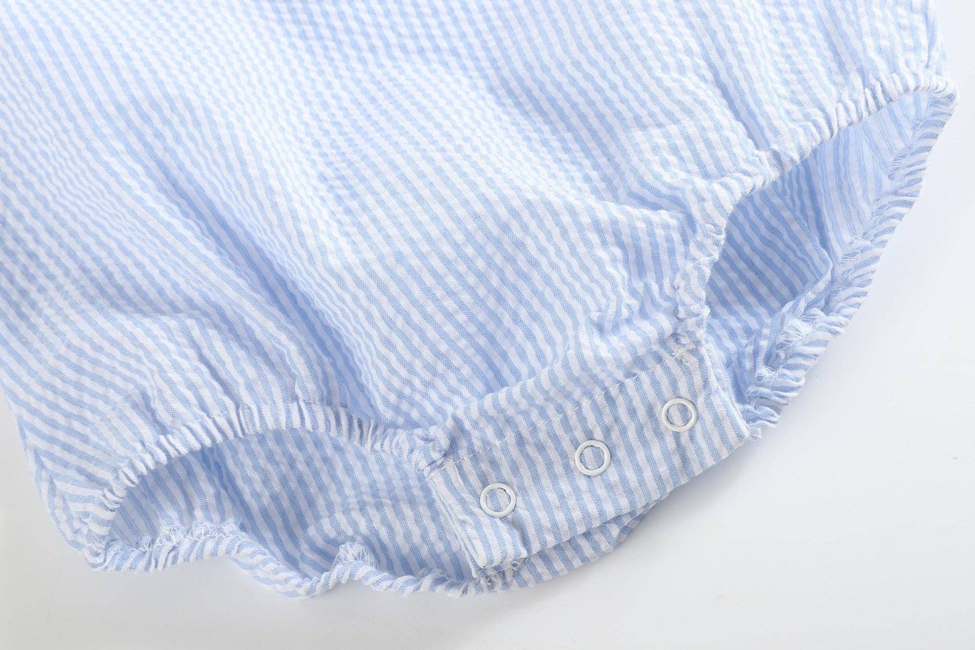 Classic Light Blue Seersucker Collared Baby Bubble Romper: