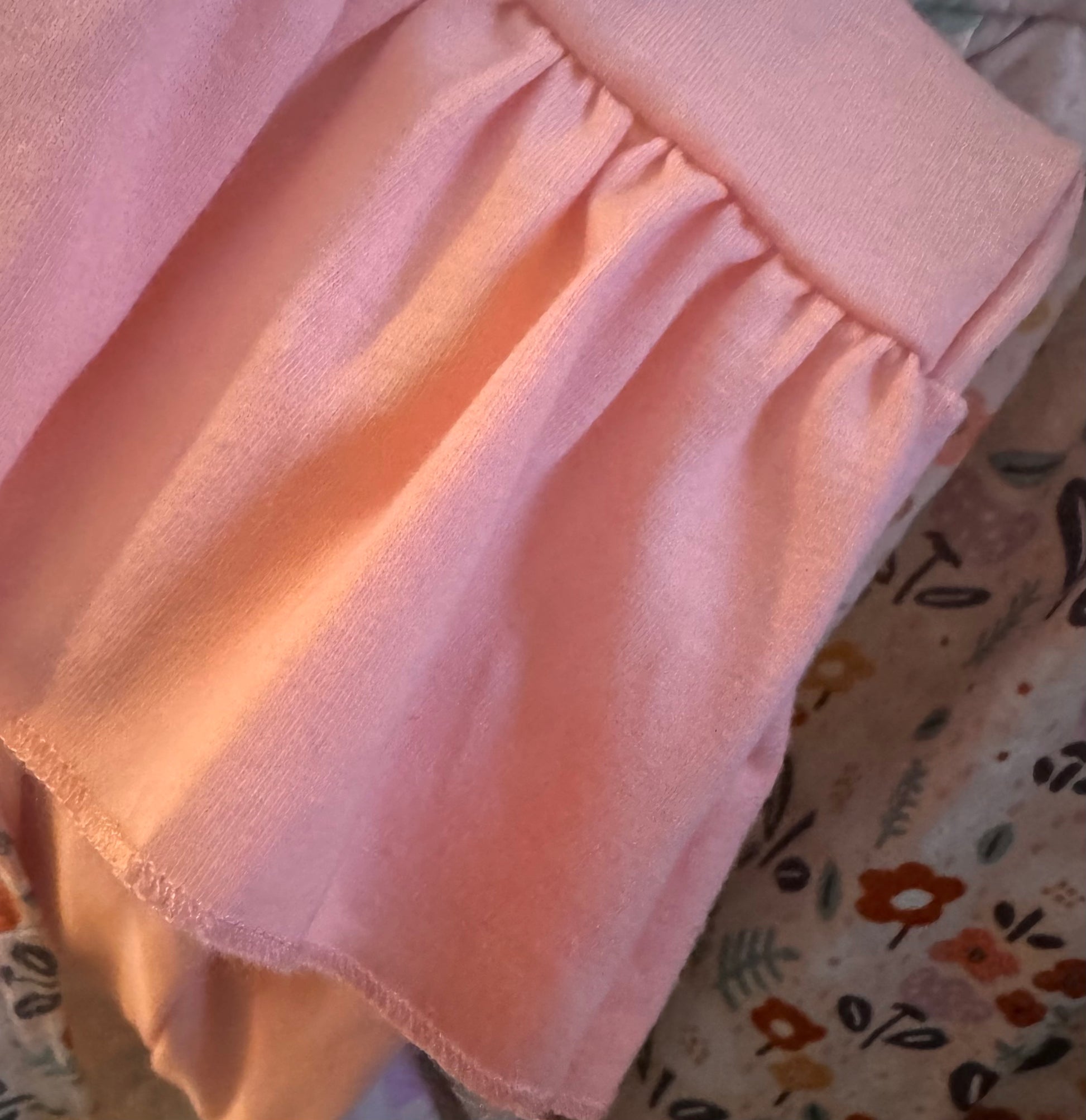 This is a precious and SOFT Peach Floral Print/Ruffle Girl Set. A must for your little girls wardrobe.