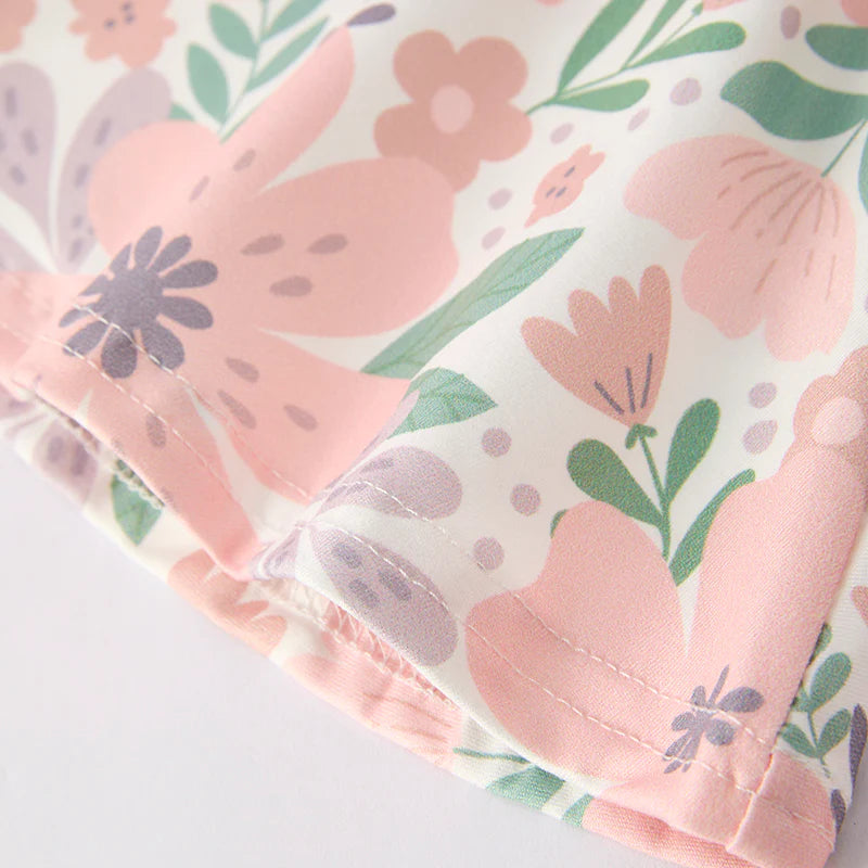 GIRLS FALL BOW APPLIQUE COTTON TOP FLORAL PRINT PANTS SET