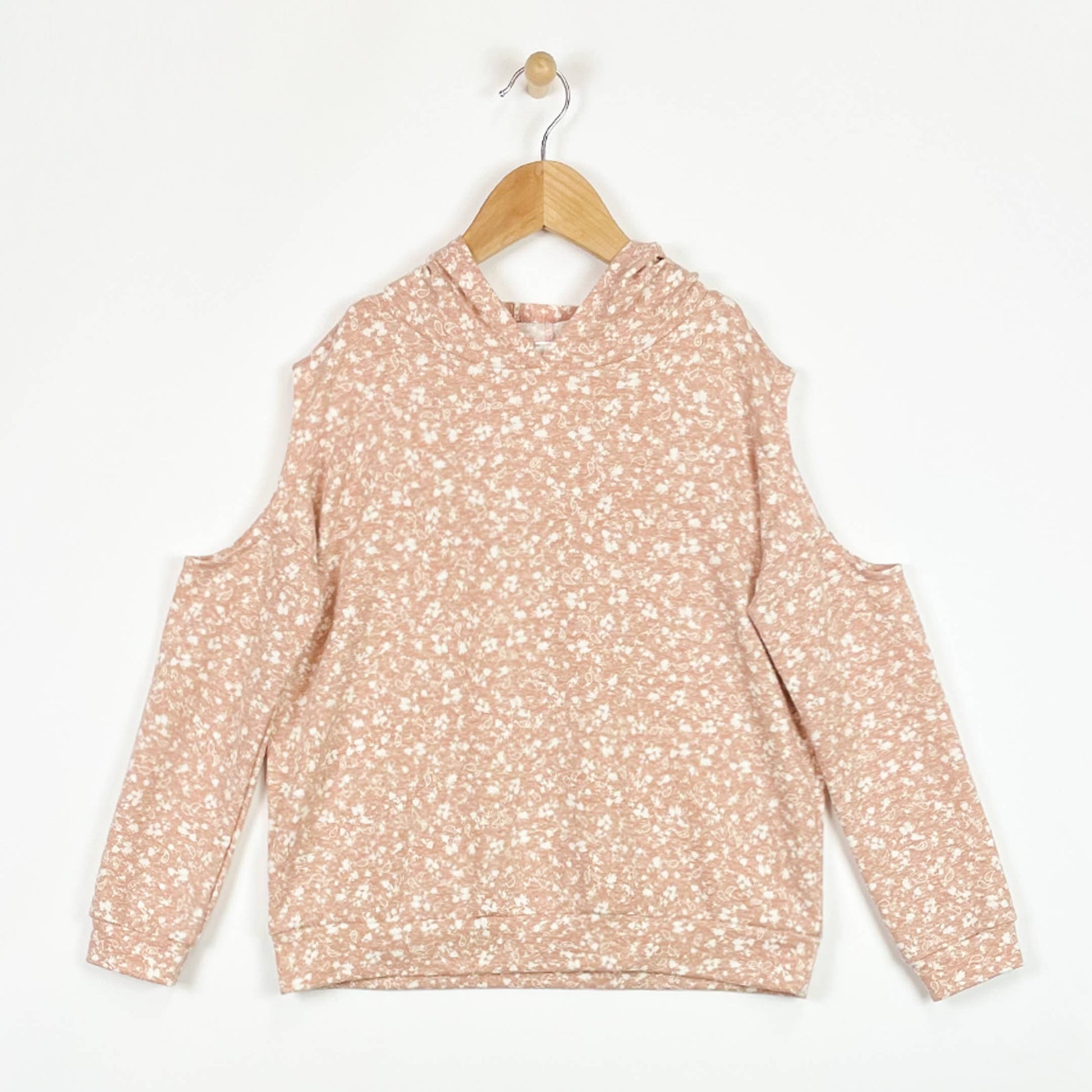 Stay cozy and stylish this fall/winter season with Heart and Arrow's, a cold shoulder pullover with a hood. This unique sweatshirt is designed for kids who love to have fun while staying comfortable. Made from a fabric blend of 63% polyester, 26% cotton, 8% rayon, and 3% spandex, it's durable and perfect for everyday wear. Remember to hand wash this item to keep it looking its best. Heart and Arrow, based in Los Angeles, offers quality basics and effortless styles for your little one's wardrobe.