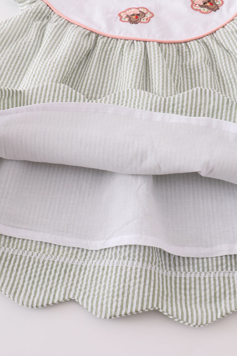 Get ahead of the flock with our Green Turkey Embroidery Stripe Girl Set! This quirky, playful set features a unique green turkey embroidery design, perfect for standing out from the crowd. Made with high-quality materials, this set is sure to bring out your little one's unique style and personality.