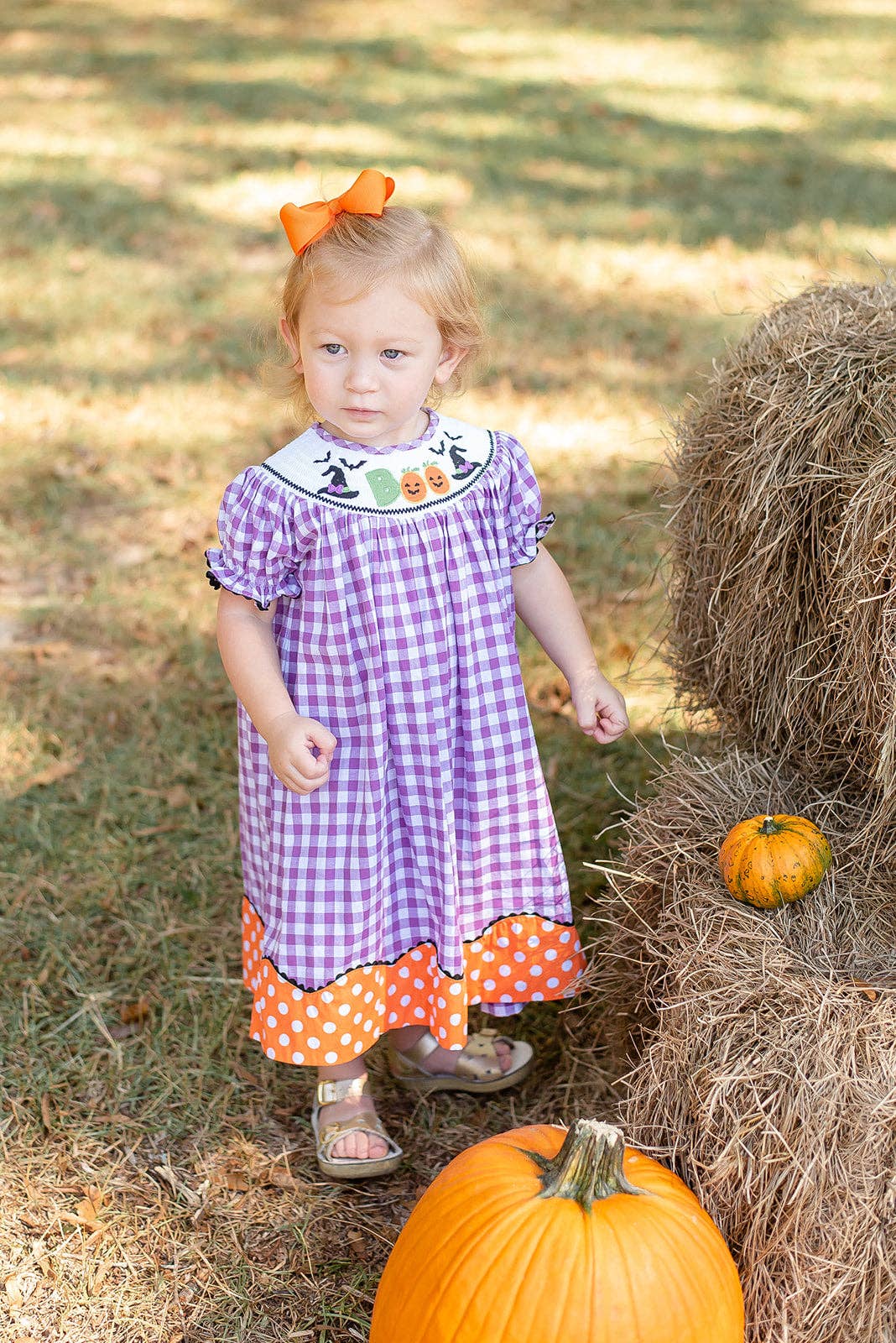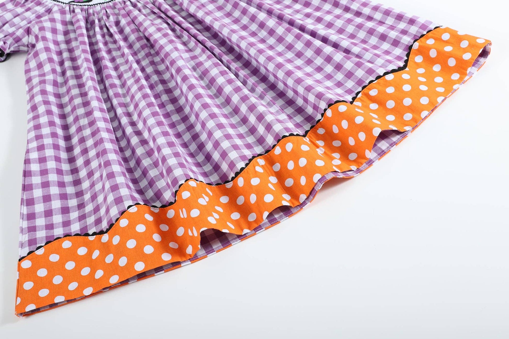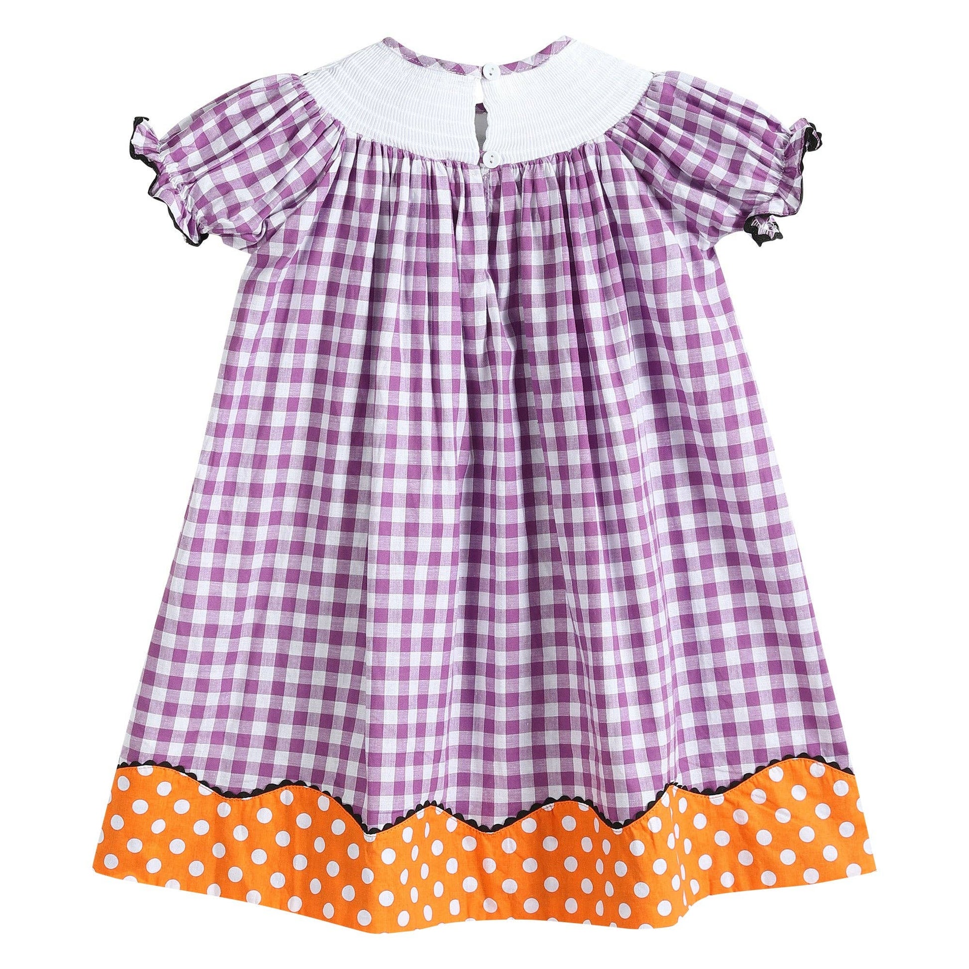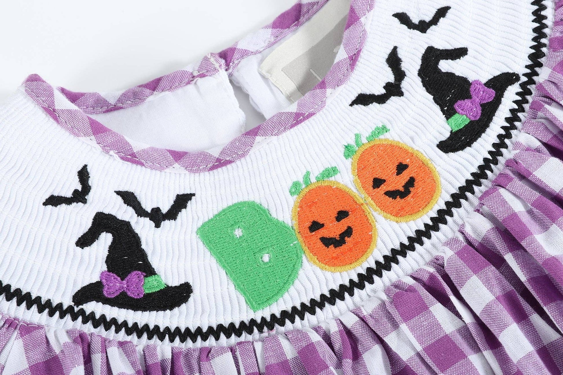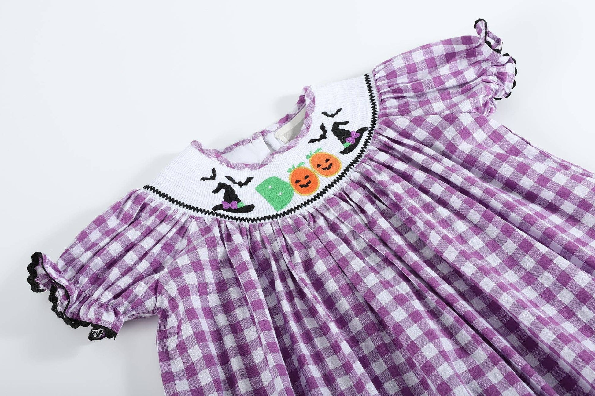 Purple Gingham Halloween Boo Smocked Bishop Dress