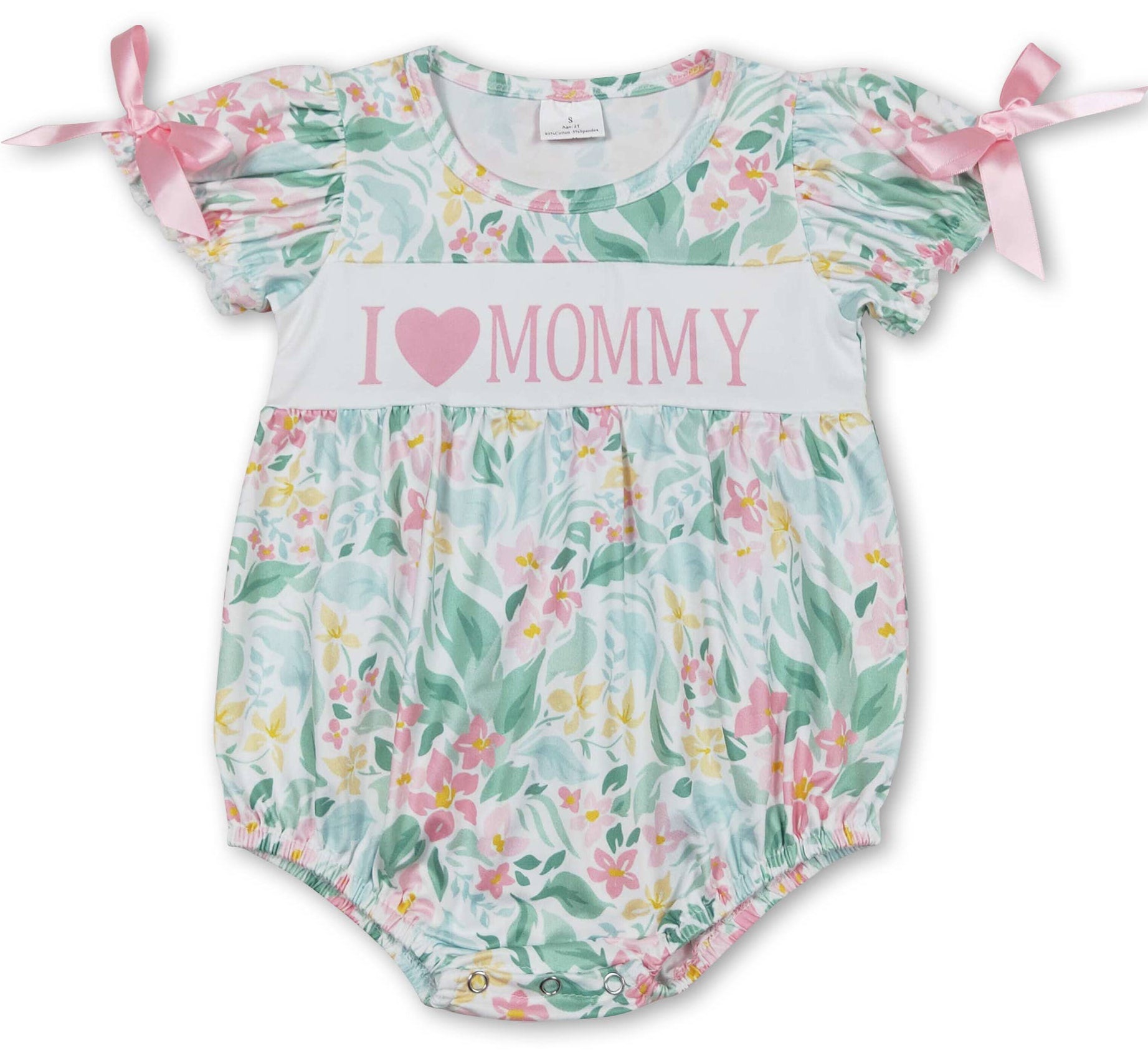 Short sleeves floral I love MOMMY mother's day girls romper: 6-12M