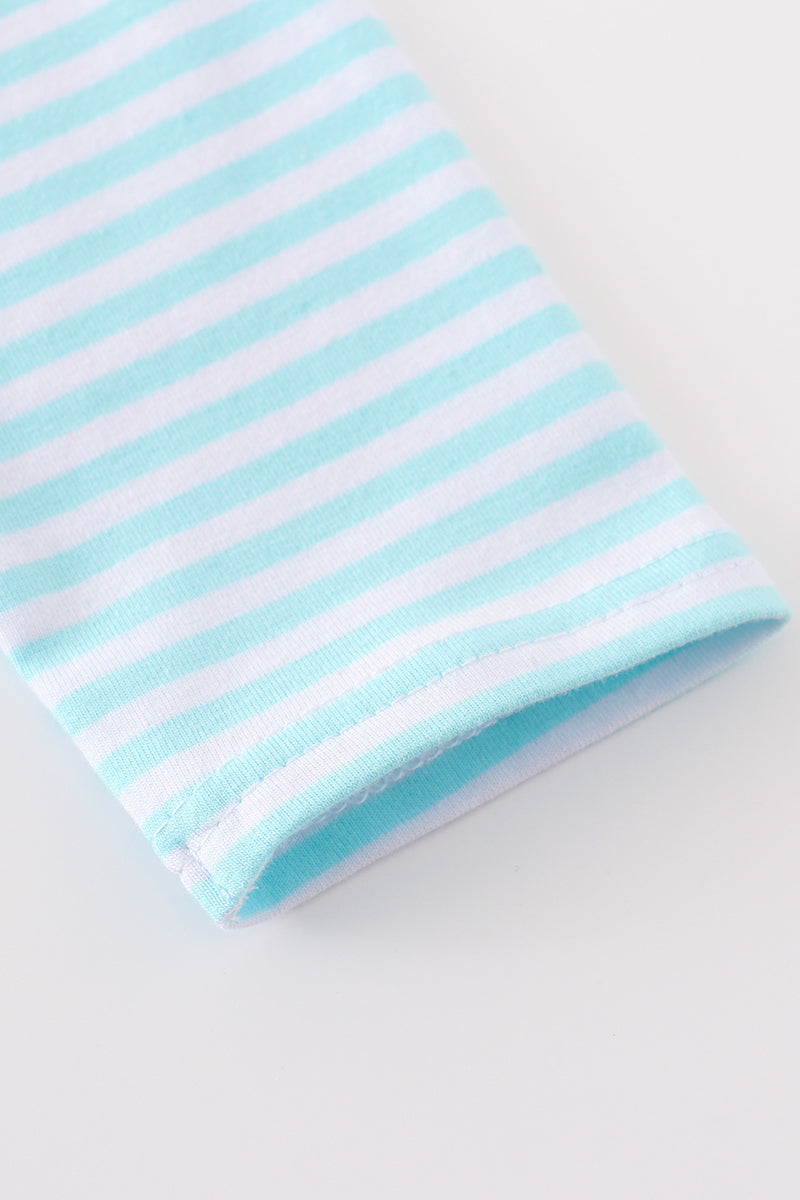 TEAL GREEN STRIPE TURKEY EMBROIDERY BOY TOP WITH BLUE COLLAR